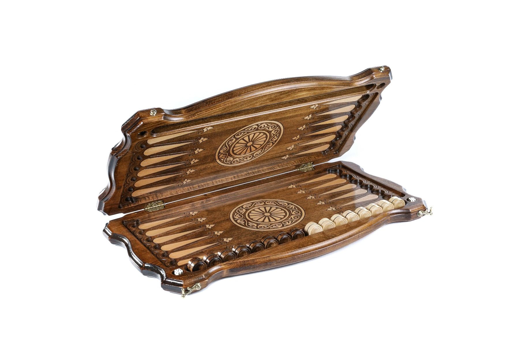 Ամբողջությամբ ձեռագործ աշխատանք է: Լաքապատ է, ծխնիներն ու փականները ձուլված են բրոնզից: Նարդու խաղադաշտը մեկ զանգված փայտից է: